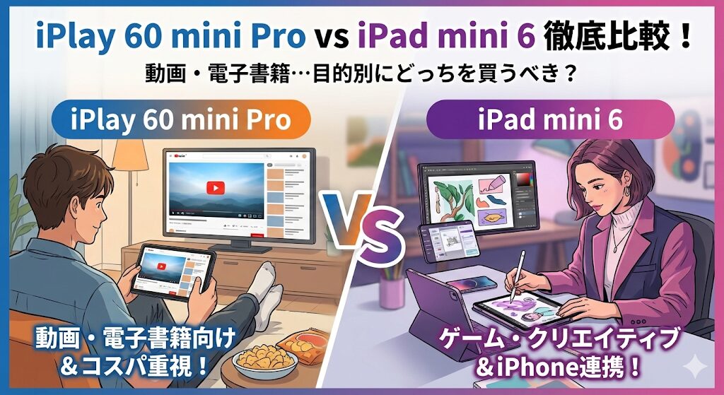 iPlay 60 mini Pro vs iPad mini 6 徹底比較!動画・電子書籍…目的別にどっちを買うべき?