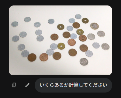 写真を確認しました。画像内の硬貨を種類ごとに判別し、合計金額を算出しました。