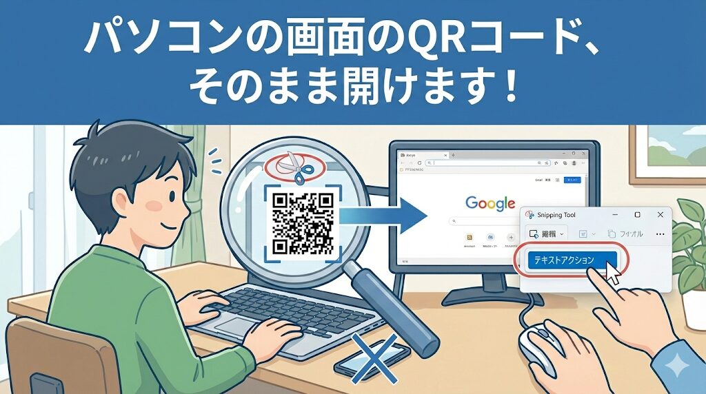 Windows 11の標準機能を活用すれば、画面上のQRコードを「画像」として認識し、そこから直接Webサイトを開くことができます。